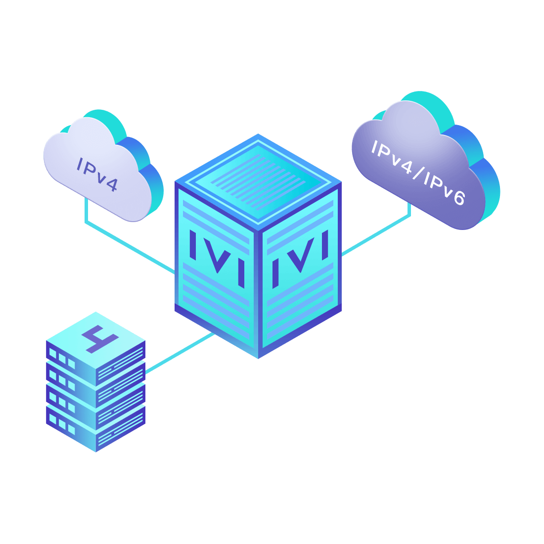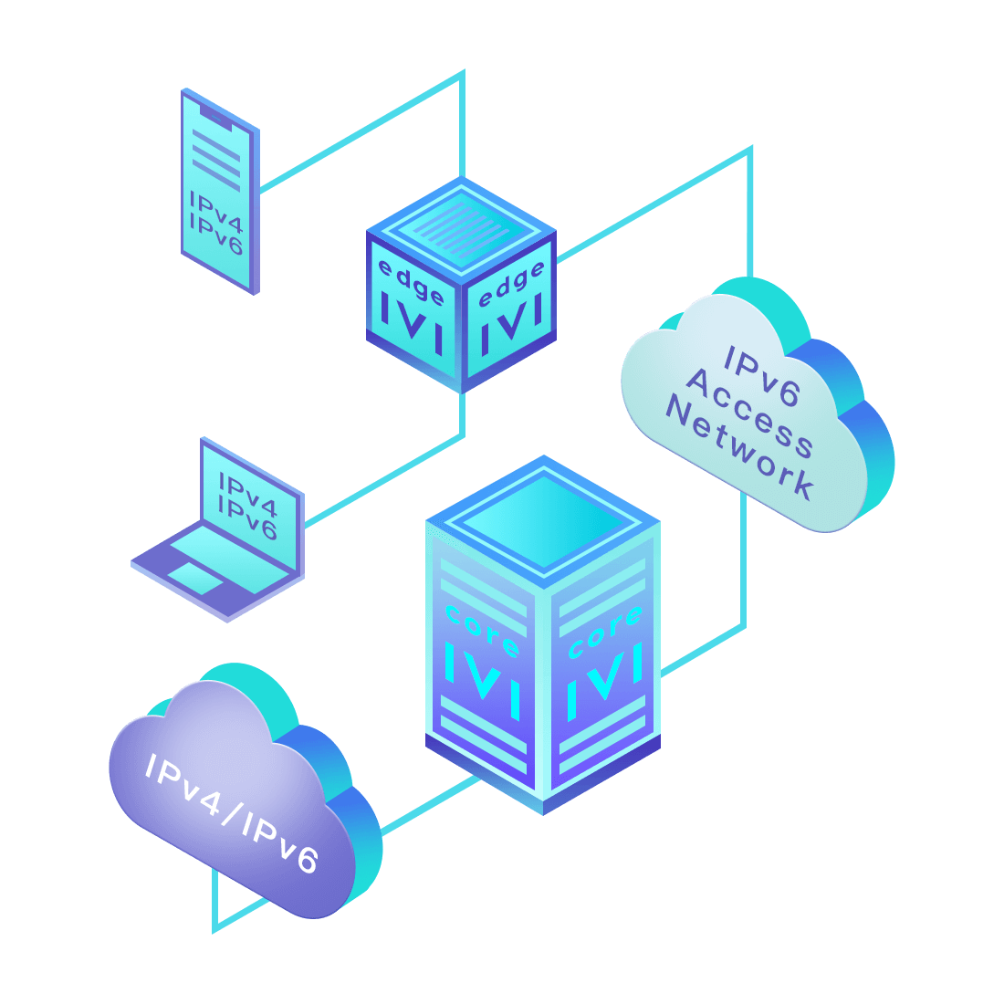 對(duì)正在進(jìn)行IPv6整體升級(jí)規(guī)劃的運(yùn)營商,應(yīng)用IPv6升級(jí)方案2.5,通過IVI無狀態(tài)翻譯技術(shù)和純IPv6接入網(wǎng)絡(luò),為雙??蛻舳撕碗p棧服務(wù)器提供連通服務(wù)。